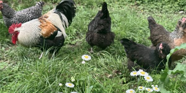 Our girls eat Purina Flock Raiser and get plenty of fresh veggies, treats, forage and pasture graze every day!